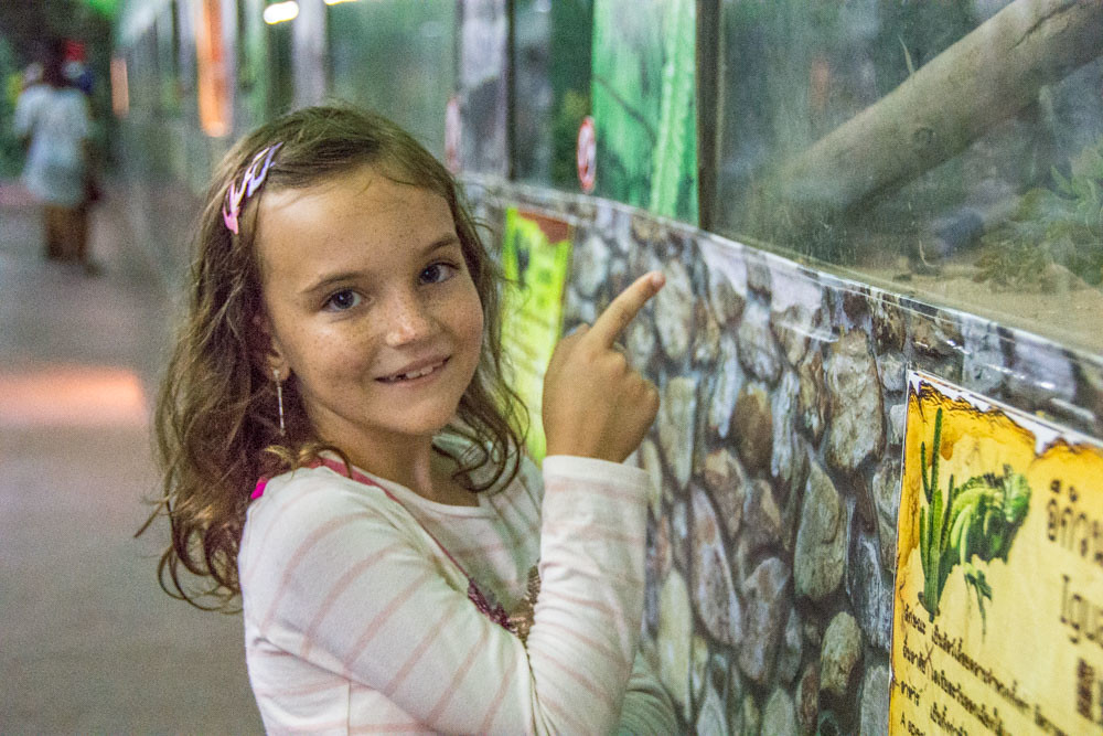 После животных заходим в прохладный коридор террариума и аквариума, где живут рыбы, змеи, насекомые.
