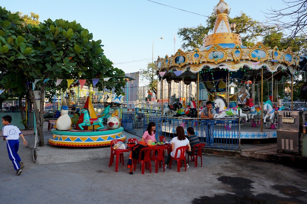 Парк аттракционов около Кафедрального Собора. Практически в центре города и прямо рядом с нашим любимым детским садиком Ладушки есть детский парк. Здесь много аттракционов для детей: паравозики, карусели, лабиринт, рыбалка, катание на лодочках и электромашинках, батуты, 5-D кино и многое другое. Цены на билеты вполне лояльные: от 10 до 15 тыс. донгов ($0,45-$0,67). Для взрослых тоже найдется несколько довольно захватывающих аттракционов, мы их в обязательном порядке опробовали.