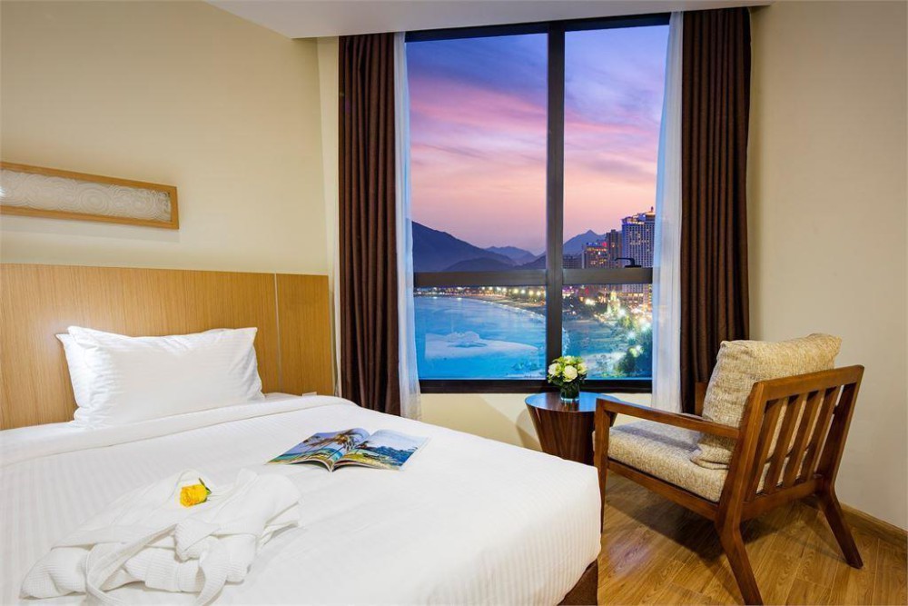 Эти отели имеют шикарный вид из окна на живописную бухту и пляж Нячанга. Если Ваш номер в данных отелях имеет балкон с видом на море, Ваши вечера в Нячанге будет окружать непередаваемая атмосфера легкого шума прибоя и прекрасного вида из окна на пляж, который хорошо освещается даже в ночное время. А начиная с 5 утра можно наблюдать из окна, как местные жители активно купаются и занимаются спортом на общественных тренажерах возле пляжа. Этим вьетнамцы сильно отличаются от, например, тайцев. Вдоль всего пляжа Няанга идет ухоженный променад, по которому приятно прогуляться теплыми вечерами.