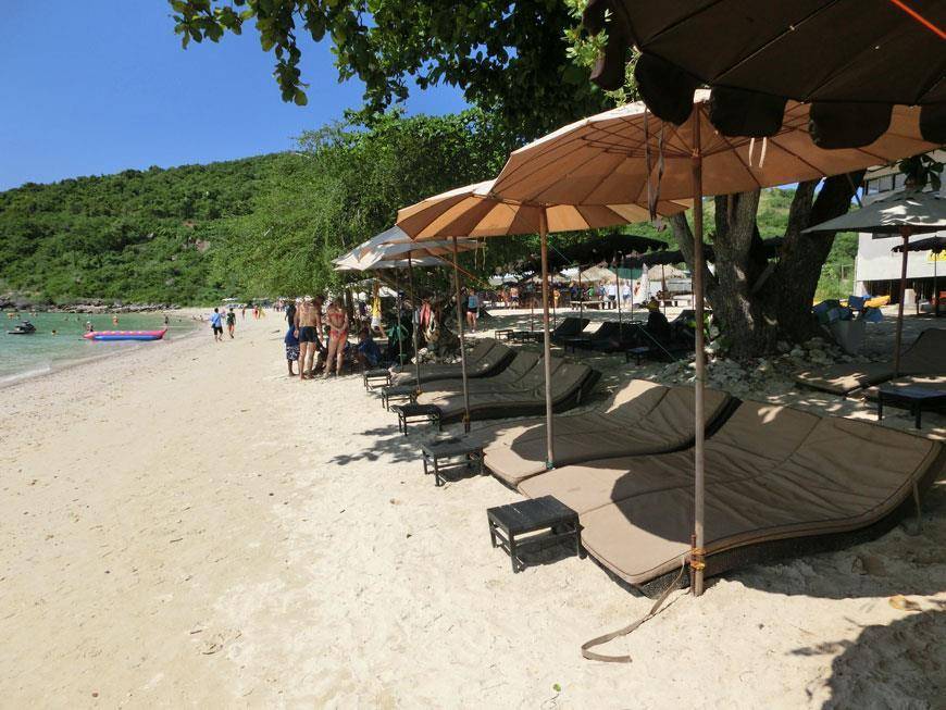 Все пляжи острова Ко Лан белопесчаные с чистейшей водой бирюзового цвета (см. фото ниже). Пользование лежаками, туалетом, душевыми кабинами платное (100/20/30 бат, соответственно).