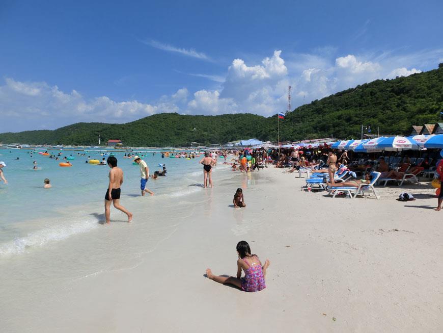 Пляж номер 1 на острове Ко Лан, который ежедневно посещает более 3000 туристов. Даже жители Бангкока приезжают именно сюда, чтобы провести уик-энд вдали от шумного и пыльного мегаполиса. Так что, в выходные дни посетителей Таваена может быть раза в два больше.