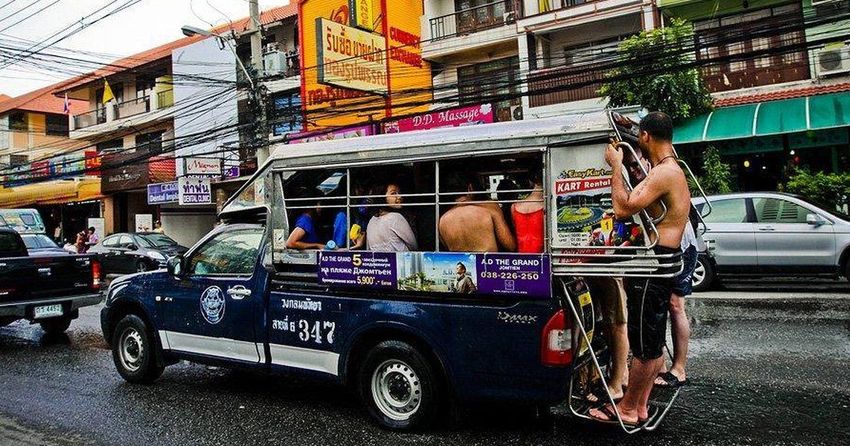 Запомните, как выглядят сонгтео – это такие грузовики. Они совершенно некомфортные, тут даже нет дверей, а сидеть вы будете на обычных длинных скамьях. Но зато именно сонгтео возят из старого центра в отдаленные районы Пхукета и пляжи.