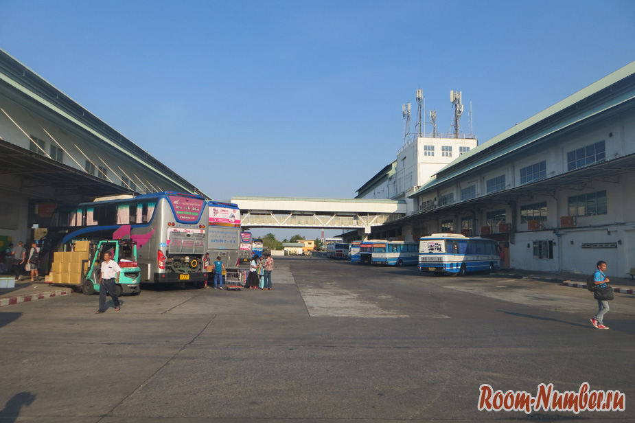 На Южном автовокзале быстро сориентировались и поехали заселяться в отель. Вокзал находится на окраине. Но мы заранее подготовились, изучив информацию в интернете, как добраться до Бангкока на общественном транспорте. Можно взять такси сразу с вокзала, но дешевле будет доехать на городском автобусе до центра — Виктори Монумент, а уже оттуда брать такси.