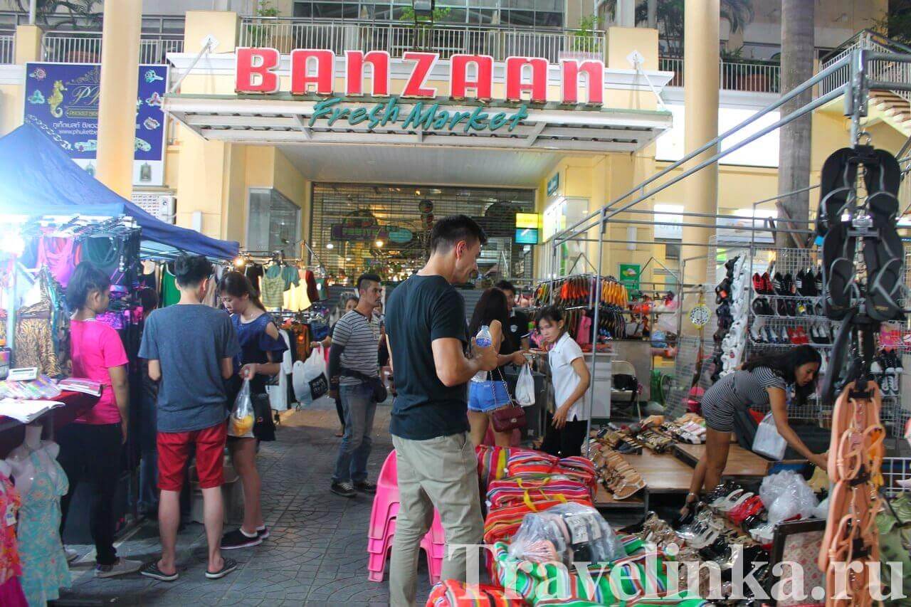 Прямо за Jungceylon, на Сои Кор-Роуд находится рынок Banzaan, спроектированный китайскими и западноевропейскими архитекторами. Рынок производит приятное впечатление и совсем непохож на традиционные тайские рынки. Прилавки эстетично оформлены и предлагают широкий выбор фруктов, овощей, сухофруктов, зелени, мяса, рыбы, сладостей. Здесь вы можете отведать свежевыжатые соки не только из фруктов, но и с сахарного тростника, купить готовые традиционные тайские блюда. А в большом ресторанном дворике при рынке можно недорого пообедать. Работает он до 17.00 ежедневно.