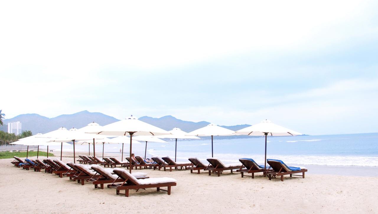 Пляж рядом с отелем не такой многолюдный, как в центре курорта, поэтому здесь можно спокойно отдыхать. Море достаточно беспокойное, но волны не слишком сильные, в отличие от центральных пляжей в Нячанге.