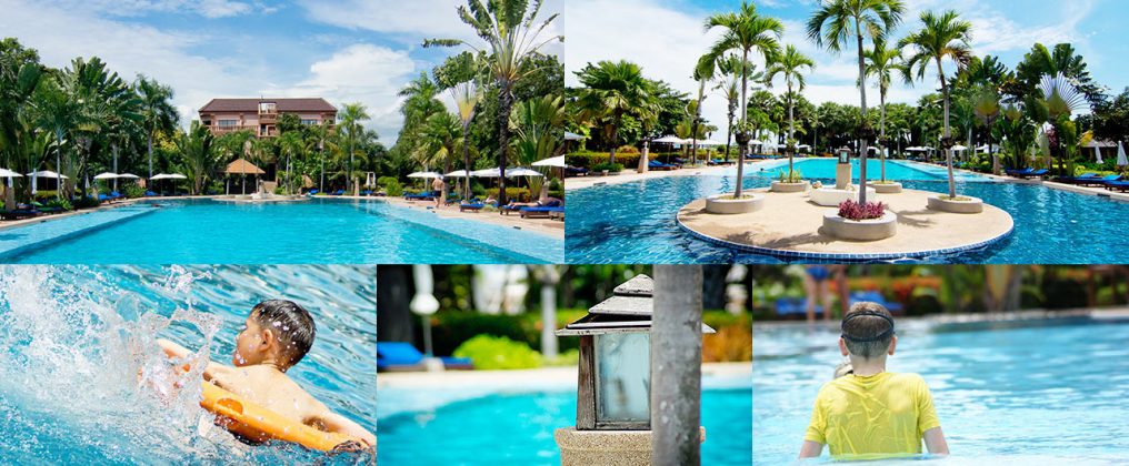 Клубный отель в тайском стиле с очень уютной зеленой территорией, три бассейна с морской водой и один отдельно для детей, плавать в них разрешается до позднего вечера. Расположение — первая береговая линия, чистый широкий пляж, присутствует тень от зонтиков и дополнительно от прекрасных пальм. Море здесь самое чистое, если сравнивать с остальными районами Паттайи. Вокруг отеля тишина и спокойствие, но до центра города очень быстро можно добраться на такси или тук-туке. Питание прекрасное, есть все необходимое, для младенца по просьбе с удовольствием подогреют молоко. В стоимость проживания входят только завтраки. Отели, работающие по системе «все включено», вообще достаточно редко встречаются в азиатских странах (ни сетевые, ни бутик).