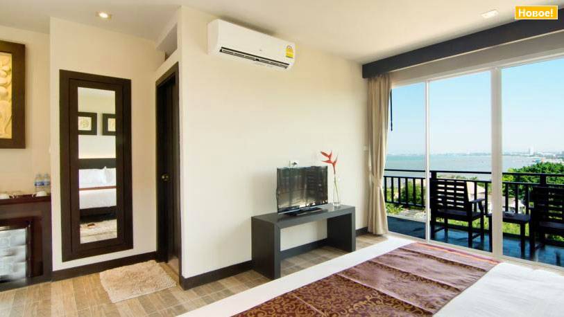 Клубный отель в тайском стиле с очень уютной зеленой территорией, три бассейна с морской водой и один отдельно для детей, плавать в них разрешается до позднего вечера. Расположение — первая береговая линия, чистый широкий пляж, присутствует тень от зонтиков и дополнительно от прекрасных пальм. Море здесь самое чистое, если сравнивать с остальными районами Паттайи. Вокруг отеля тишина и спокойствие, но до центра города очень быстро можно добраться на такси или тук-туке. Питание прекрасное, есть все необходимое, для младенца по просьбе с удовольствием подогреют молоко. В стоимость проживания входят только завтраки. Отели, работающие по системе «все включено», вообще достаточно редко встречаются в азиатских странах (ни сетевые, ни бутик).