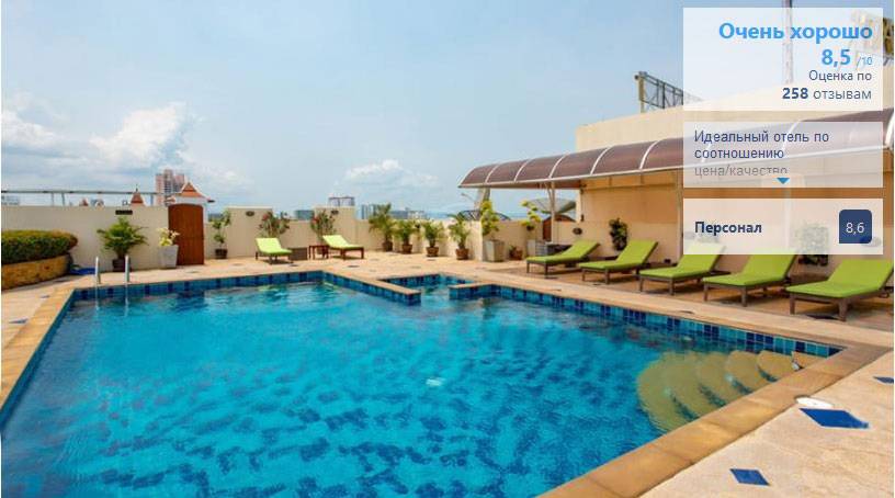 Во-первых, самые выгодные цены и тарифы на проживание в гостиницах представлены на сайте booking.com. Например, стоимость проживания в отеле Fifth Jomtien Pattaya 4* в номере — студия на сервисе составляет 3820 рублей. Если этот же номер бронировать на официальном сайте гостиницы, то цена будет 4200 рублей.