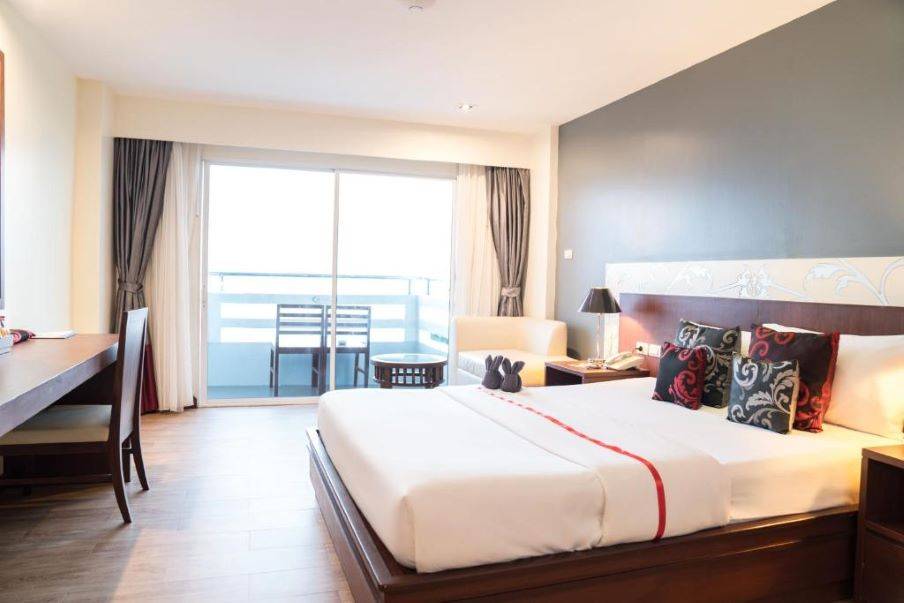 38 этажей с потрясающими видами на Сиамский залив и Паттайю ждут туристов в этом отеле. Сьюты, семейные номера, люксы оснащены всем необходимым — от холодильников и сейфов до джакузи и балконов в зависимости от категории. Интерьерам характерны свет, минимум деталей и максимум пространства. Воздуха добавляют и окна в пол.