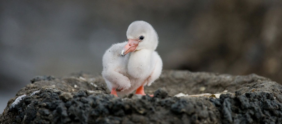 Забота о потомстве развита у самца и самки одинаково. Оба поочерёдно высиживают яйца. Обычно это одно яйцо, но бывают кладки до трёх. Гнёзда строят из густого ила и донной грязи высотой до 35 см, чтобы защитить от возможного затопления в сезон дождей. Птенцы появляются на свет, покрытые белым пухом. Через месяц белый пух сменится на серый, и только через два года у птенцов появится бело-розовое оперение. Клюв у птенцов изначально плоский, форму меняет постепенно. Выкармливают птенцов «птичьим молоком» – творожистой питательной смесью из секрета желёз в пищеводе обоих родителей, лимфы и крови.
