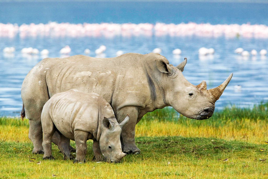 Носороги – вторая после фламинго «живая жемчужина» Накуру. Ради них некоторое время назад охраняемая территория национального парка была увеличена. Здесь проживает одна из самых больших в Кении популяций чёрного носорога и внушительное количество белых носорогов.