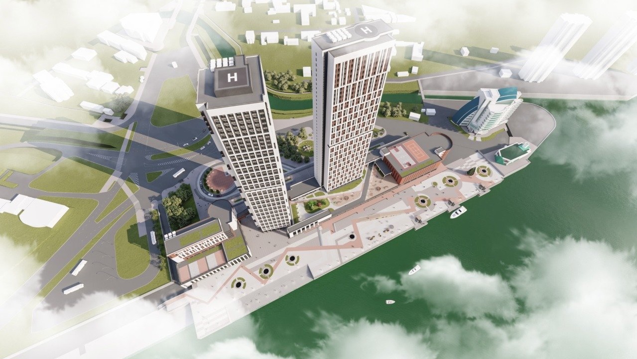 Будущий комплекс должен стать главной доминантой этого места. Одна башня стоит ближе к реке, вторая – развернута на новый мост. Поэтому у всех жильцов откроются еще и потрясающие виды на водоем, леса, город, подсвеченный ночью мост.
