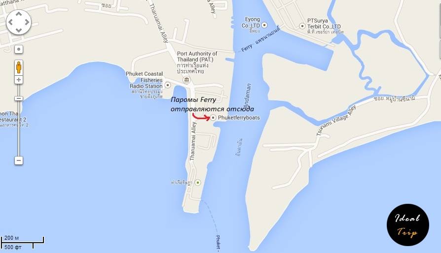 - Второй вариант. Вы берете такси и отправляетесь в порт Рассада (Rassada Pier), который находится на восточном побережье Пхукета, недалеко от Пхукет Тауна, выгружаетесь и идете в кассу за билетами. Цена такси вам обойдется от 400 бат и выше, в зависимости от района вашего прибывания. Цена билета на паром 400 бат.