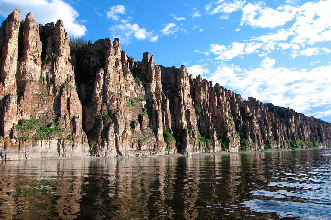 Ленские столбы – одна из самых популярных природных диковинок Якутии. Эти скальные образования, сложенные кембрийскими известняками, находятся в 200 км от Якутска. Гряда вытянутых вертикально отвесных скал тянется на десятки километров вдоль правого берега реки Лены. В 1994 году был основан национальный парк «Ленские столбы», а в 2012 году это геологическое образование получило статус объекта всемирного природного наследия ЮНЕСКО.