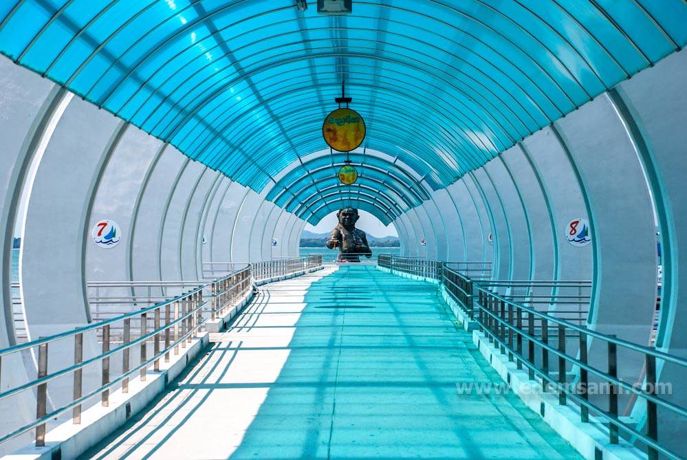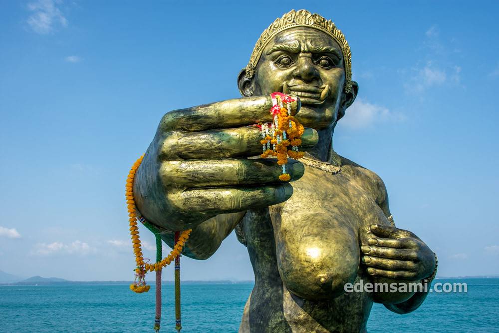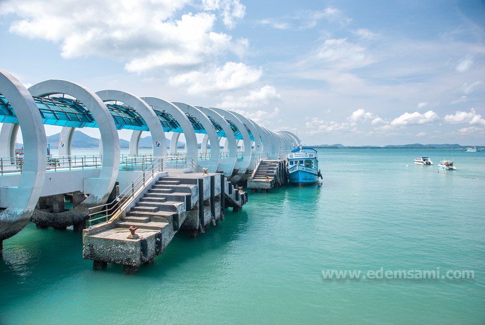 Большие кораблики с любого материкового пирса прибывают на главный пирс острова, Надан (или соседний старый и маленький). Опознать это место просто по статуе гигантессы.