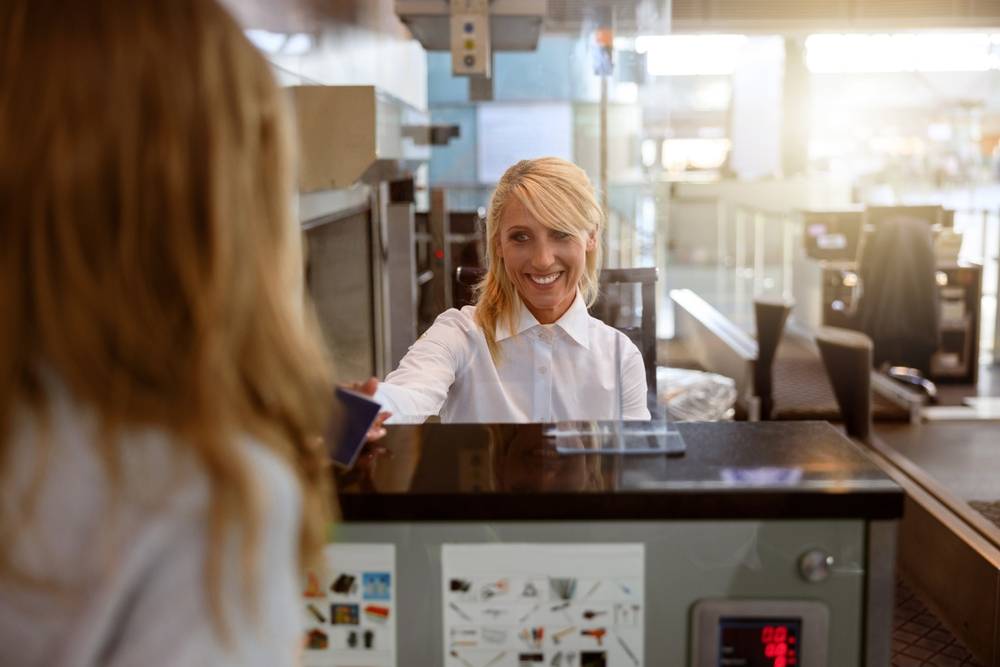 На стойке регистрации сотрудник аэропорта проверит ваши документы и выдаст вам a boarding pass. Здесь же вы можете сдать багаж и получить бирки для carry-on luggage (ручной клади).