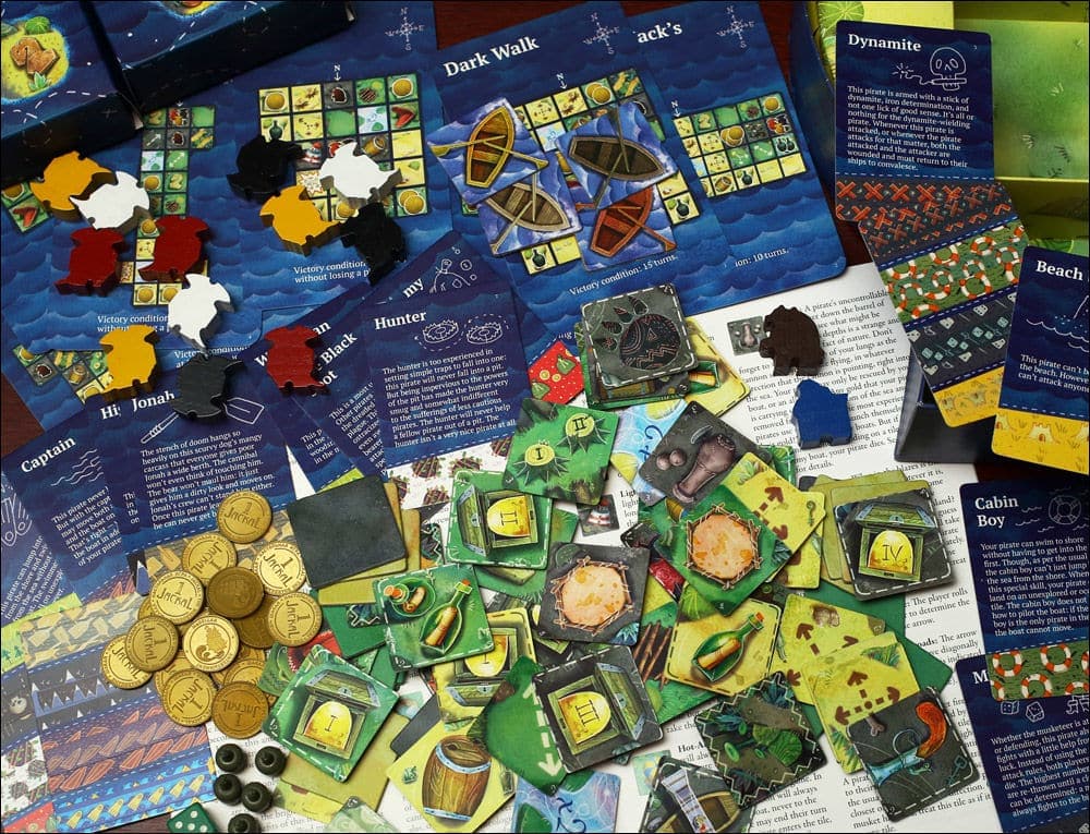 Изначально игровое поле может испугать участников: множество закрытых карточек, разложенных огромным квадратом выглядит громоздко и сложно. На самом деле, чтобы преодолеть карту, у пиратов уходит в среднем от часа до ста двадцати минут. За это время вы успеете полностью исследовать карточки, познакомиться с местными аборигенами, убежать от голодных крокодилов, возможно, пару раз попадете в плен. И, конечно, унесете столько золота, сколько поместится в ваших карманах.