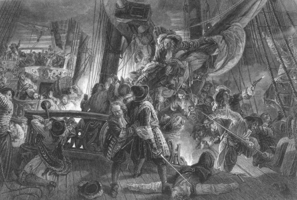 Но перед этим следовало основательно подготовиться: над палубой пиратского корабля натягивали веревочную сеть, чтобы спасти ее от падающих обломков, на марсы мачт забирались стрелки, чтобы с наиболее удобных позиций обстреливать противника, а все проходы к квартердеку и полуюту баррикадировали бочками и мешками, чтобы создать цитадель для обороны в случае, если абордаж пойдет «не по плану».