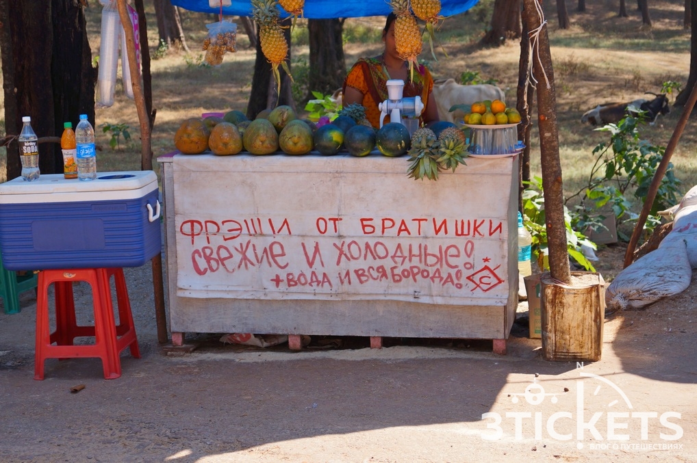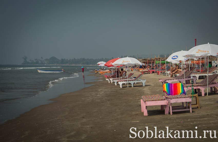 Я не могу утверждать, что их здесь больше, чем в не менее русском Арамболе, но народ тут на порядок более денежный. Аренда жилья дороже, чем в других деревнях. И сейчас, во время кризиса, многие дома стоят пустые. Цены в ресторанах тоже процентов на 30 выше, чем в Арамболе. Холодные напитки в шеках на пляже от 100 рупий ($1,6), блюда с курицей 250-280 ($4-4,5).