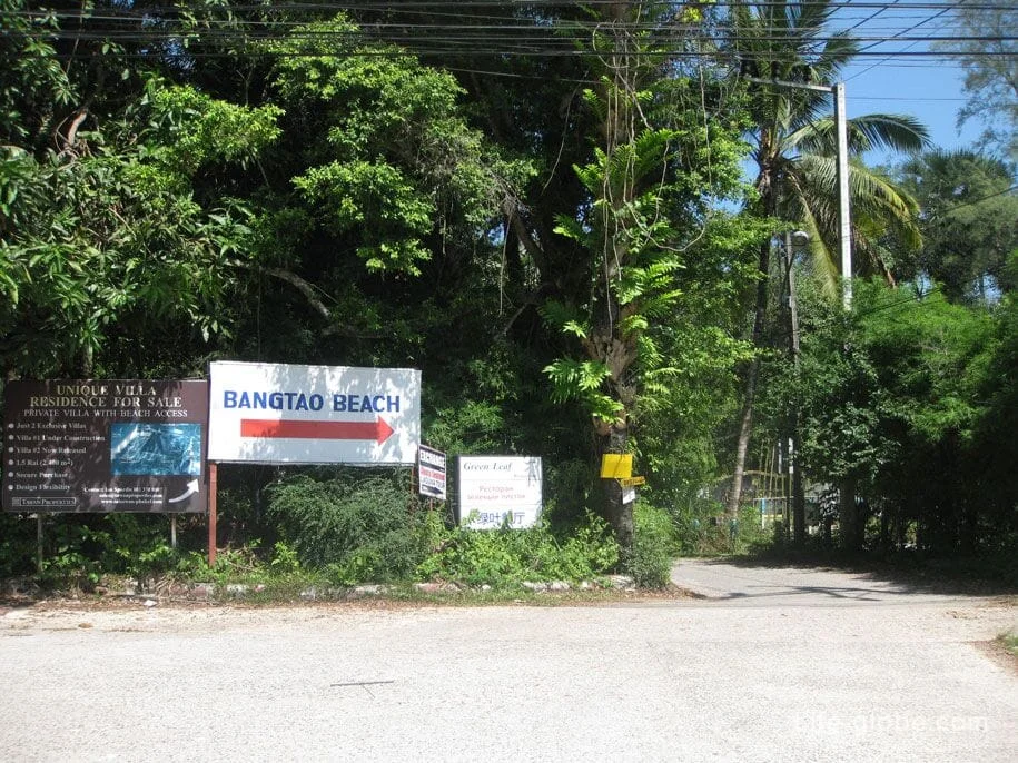 Первый указатель пляжа БангТао будет находиться на развилке, у улицы Soi Cherngtalay 14.