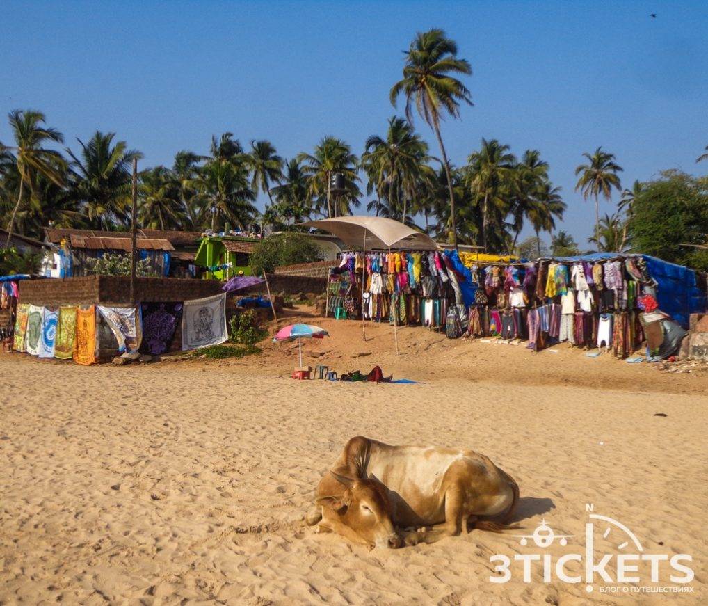 Говорят, раньше весь пляж Калача принадлежал нудистам, но со временем их вытеснили на скалы. А на пляже построили кафе и поставили лежаки, которые сдают отдыхающим за 30 рупий.