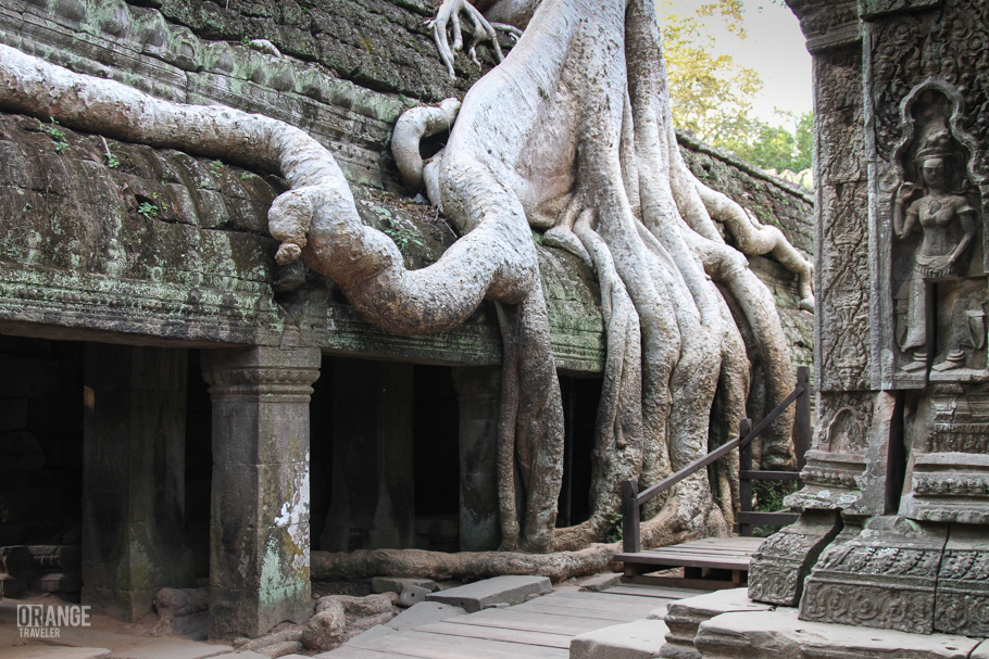 Славу храму Та Пром принесли вовсе не уникальные строения в честь богини совершенной мудрости Праджняпарамиты, которые возводили 80 тысяч крестьян. Богам нужно благодарить команду блокбастера «Лара Крофт – Расхетитльница Гробниц» во главе с Анджелиной Джоли. Кадры к фильму, где декорациями выступают развалины храма с огромными корневищами фиговых деревьев, кажется, видели все. В Та Проме некогда было многолюдно, примерно как и в наше время. Здесь проповедовали более 3 тысяч монахов, а богам поклонялись более 12 тысяч человек из окрестных деревень. В Та Пром есть и еще одна достопримечательной – лик, выглядывающий между корней деревьев. Обнаружить его самостоятельно не получится – он находится внутри одного из строений, указателей нет никаких. Найти его сложно еще и из-за небольшого размера. Правильное место укажет только гид.