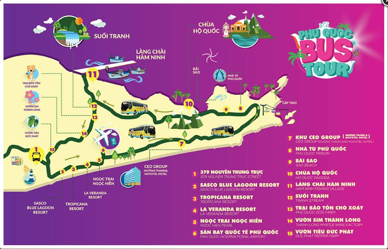 Начальной точкой является станция в городе Ан Тхой в южной оконечности острова Фукуок. Конечная точка это станция на острове Хон Тхом. Это остров не крайний в архипелаге Ан Тхой, а находится в его середине. Иногда его называют Ананасовым островом. На нем есть несколько пляжей: Бай Чао (Dai Chao), Бай Нам (Bai Nam), Бай Ном (Bai Nom) — очень уединенный, Бай Чыонг (Bai Chuong) — около пристани, поэтому бывает замусоренным. На острове работают аквапарк и парк развлечений.