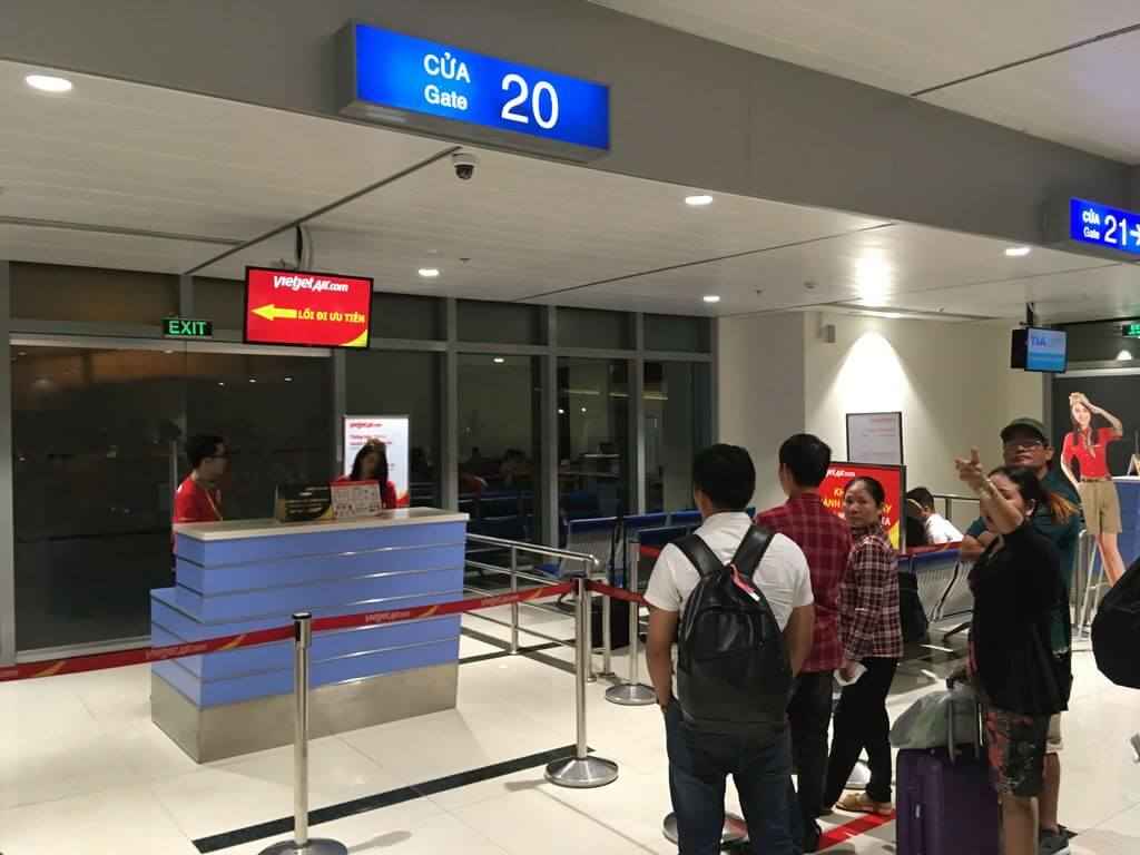 Мы взлетели, и через пол часа показался Фукуок. Это был первый раз, когда я днём наблюдал остров Фукуок с высоты , так как в другие разы мы прилетали на остров уже ночью и единственное что было видно, так это огни Зыонгдонга и маяки канатной дороги. Это было прекрасно, видеть зеленый Фукуок с высоты птичьего полета, но любоваться видами пришлось не долго: наш самолет полетел обратно. Случилась поломка, и капитан передал что мы возвращаемся в Хошимин. После чего еще минут пятьдесят мы кружили над землей вырабатывая топливо. Сели без проблем, но еще почти пол часа нас не выпускали из салона, пока инженеры наземной службы тестировали самолет. Вердикт был неутешительный: самолет починят через три часа. Которые мы проведем в аэропорту. Надо отметить что компания VietJet предложила нам ужин, но организация питания была из рук вон плоха, и причина тому всё та же — вьетнамцы не умеют в очередь. Когда можно было по одному оперативно заказать и отойти от стойки в ресторане они устроили «царя горы» и двести человек ели больше двух часов, по этой причине рейс задержали не на два часа, как сообщалось ранее, а на три, но не это было самым неприятным.