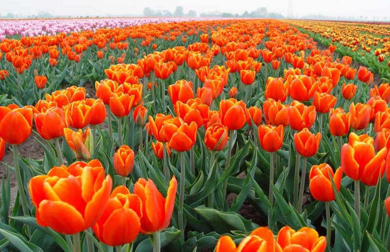 Цветочный бизнес — красивый бизнес. Об этом знают не только все, кто его касался, но и те, чье путешествие по Нидерландам пришлось на апрель-май. Это время, когда в стране цветут тюльпаны. Цветут они не только на клумбах и грядках, чем мало кого удивить можно, но и на 11000 гектаров земли, задействованных в этом виде бизнеса. Поля представляют собой фантастическое зрелище: разноцветные полосы, образованные цветами разных сортов, покрывают всё видимое пространство. Всего в стране выращивается больше трех миллиардов луковиц в год, большая часть их уходит на экспорт. Посмотреть на этот волшебный калейдоскоп лучше всего с высоты птичьего полета: мероприятие затратное, но оно того стоит. Во всяком случае, это зрелище абсолютно уникально, такого нет больше нигде в мире. Ну а для того, чтобы повторить эту удивительную картину у себя на даче, достаточно купить луковицы тюльпанов различных сортов и высадить их на грядки. Конечно, масштабы будут поскромнее голландских, но, зато, полюбоваться на яркое зрелище можно из собственного окна.