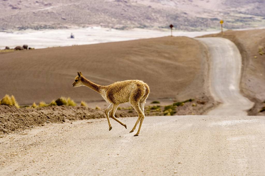 Из-за крайней засушливости пустыни в Атакаме обитают лишь несколько специально адаптированных видов млекопитающих, таких как Ушастая мышь Дарвина. Менее засушливые части пустыни населены Южноамериканская серая лисица и вискаша (родственник шиншилла). Более крупные животные, такие как гуанако и викуньяс, пасутся на участках, где растет трава, главным образом потому, что она сезонно орошается талым снегом. Викуньям необходимо оставаться рядом с постоянным водоснабжением, в то время как гуанако могут перемещаться в более засушливые районы и дольше жить без пресной воды. Южноамериканские морские котики и Южноамериканские морские львы часто собираются вдоль побережья.