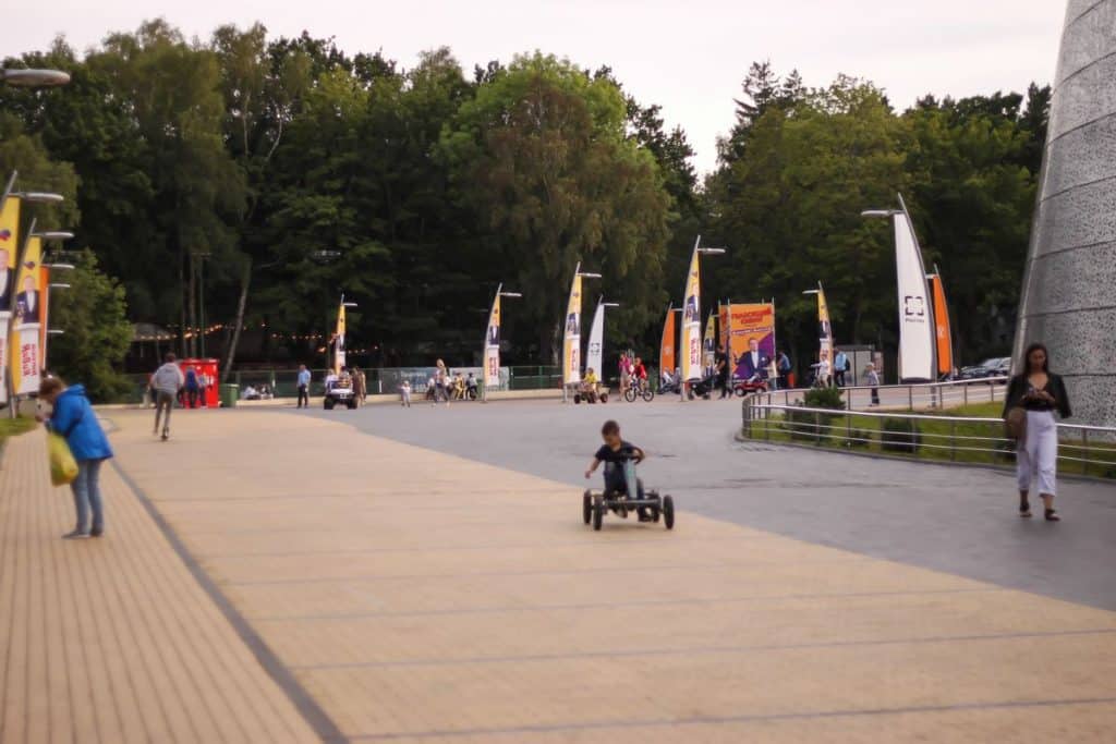 В Светлогорске тоже есть велодорожки. Одна из них, например, соединяет Светолгорск и Отрадное. Другая проходит по новому променаду вдоль моря. Но в Светлогорске другой рельеф, город расположен на холме высотой 50-60 метров и кататься на велосипедах непосредственно в курортной части города сложно. Для самых маленьких есть удобная площадка для катания перед театром эстрады “Янтарь – холл” и в прилегающем к нему парке.