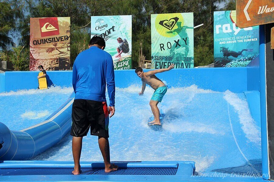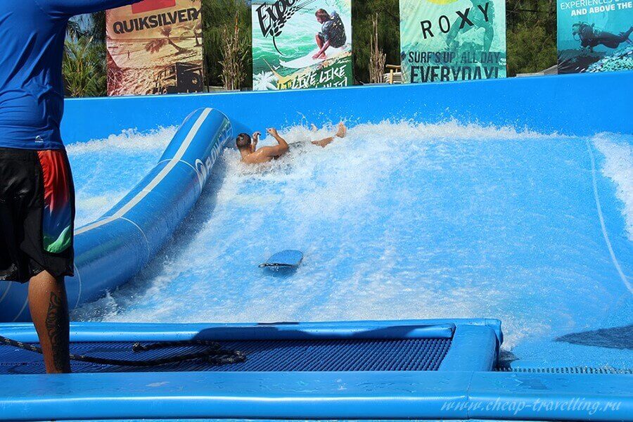 Время сильных ветров и больших волн закончилось, но можно встать на доску на искусственной волне.
