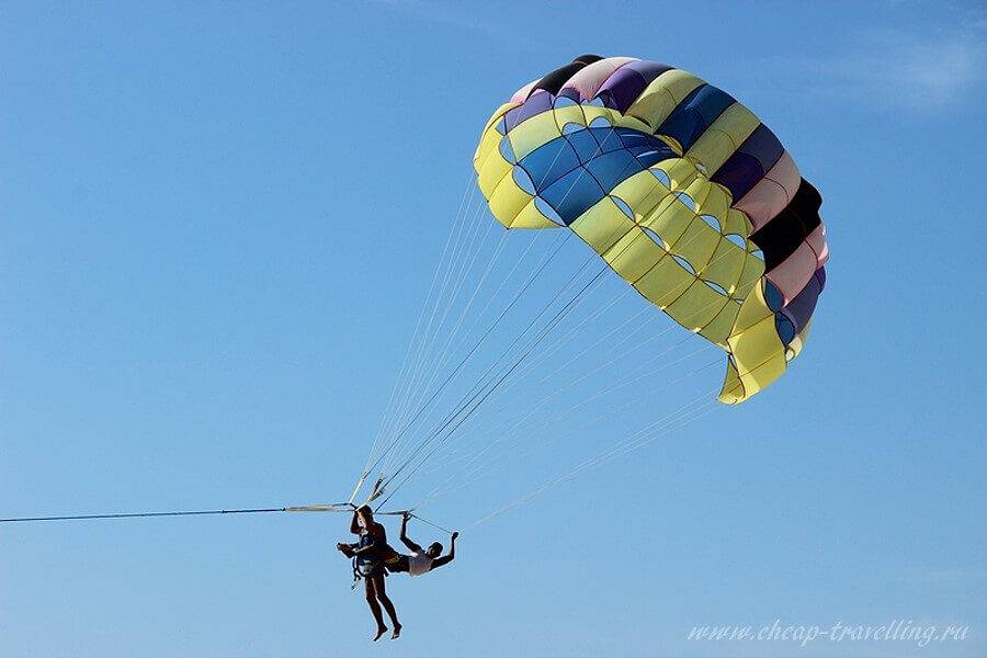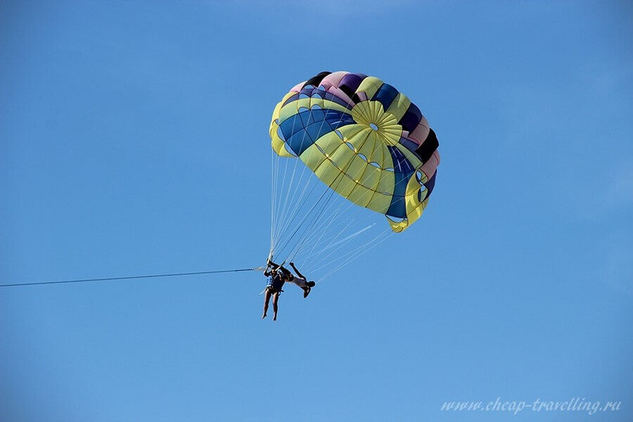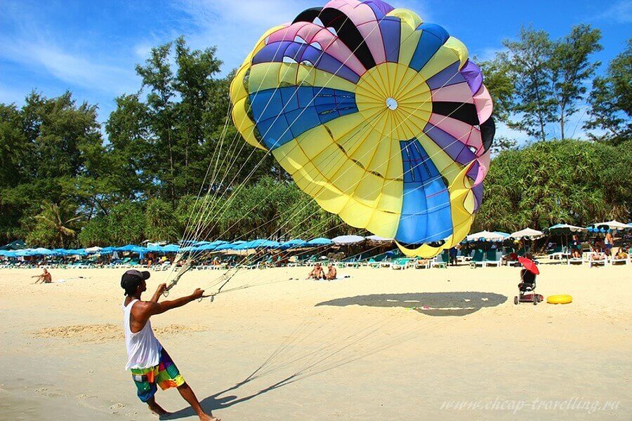 На Кароне однажды то ли от ветра, то ли ещё по какой-то причине стропы парашюта зацепились за верхушки высоких деревьев растущих на кромке пляжа. «Пассажир» в месте с «пилотом» камнем упали вниз с приличной высоты и девушку японку увезли на скорой, а «пилот» с командой просто уплыли на лодочке в неизвестном направлении.