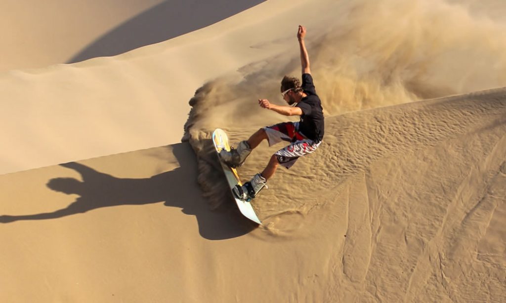 - Попробуйте сэндбординг – покорить песчаную гору и скатиться с нее на доске, как для сноуборда. Только вместо снега вас ожидает раскаленный песок!