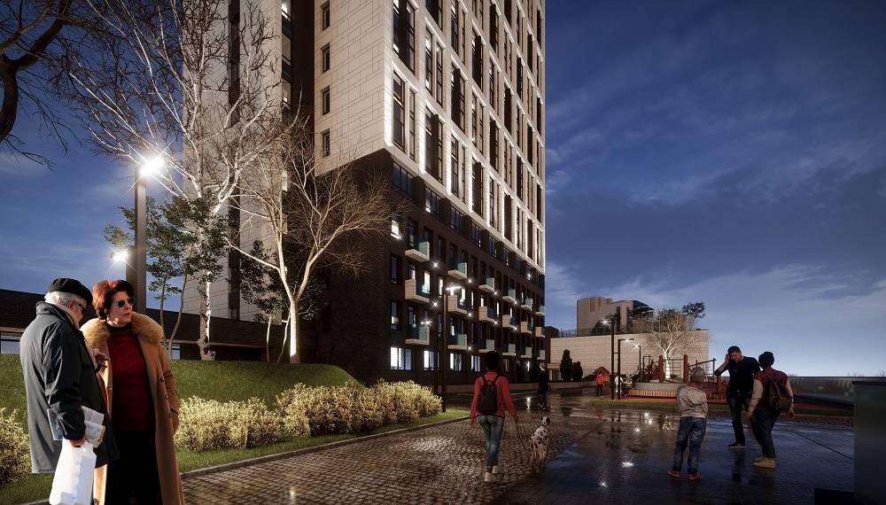 Во дворе будет детская игровая площадка, беседки, тренажеры. Проект предусматривает обустройство прогулочной зоны возле жилого комплекса, доступ на нее будет свободным.