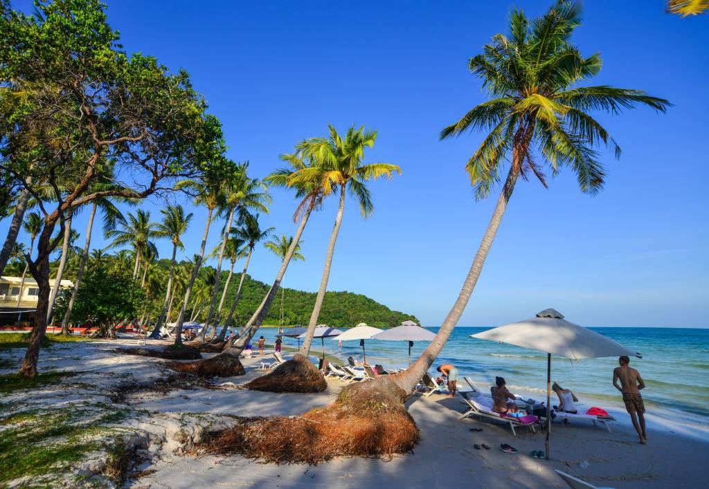 Люди наслаждаются пляжем на острове Фукуок, Вьетнам