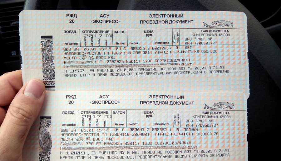 Тикеты, приобретенные в кассе железнодорожного вокзала, выглядят так же, как и на поезда дальнего следования.