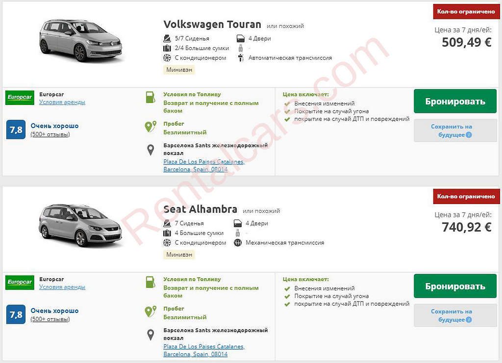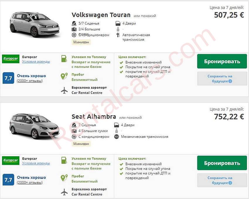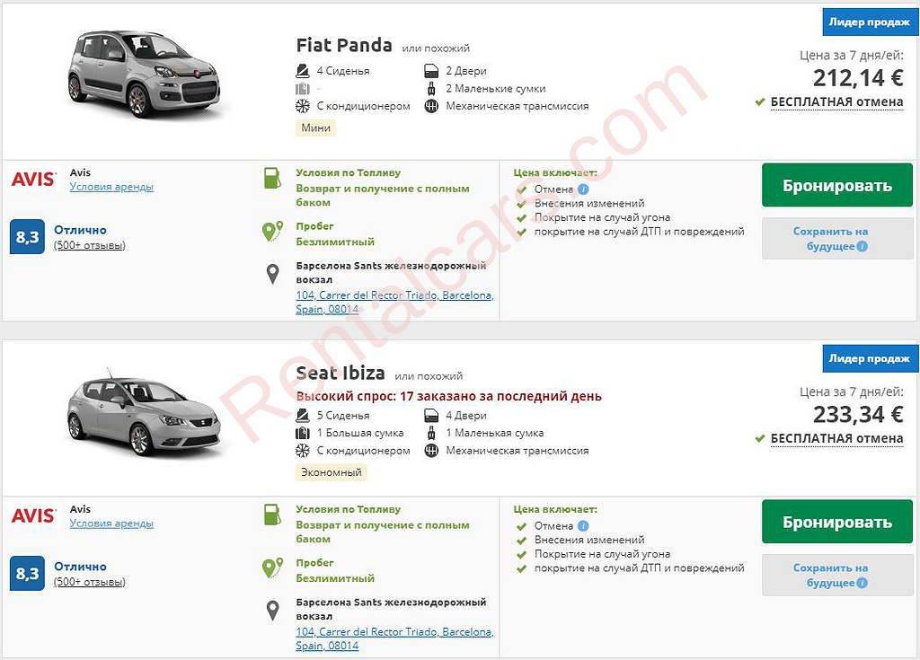 Для сравнения возьмем популярные классы автомобилей – мини, экономного, минивэны и предложения прокатных фирм Avis и Europcar. Срок аренды – 7 дней. Точки выдачи – аэропорт Эль-Прат и железнодорожный вокзал Барселона Сантс, куда можно доехать без пересадки на электричке или метро.