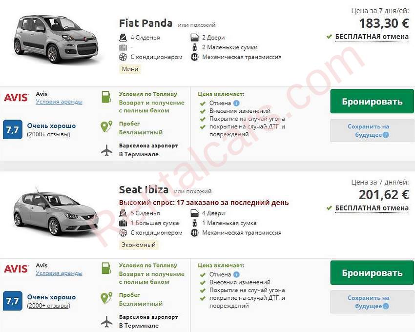 Для сравнения можно посмотреть предложения других популярных в Испании прокатных контор , , . Ситуация может измениться в зависимости от сезона и спроса. В летний период при большом наплыве туристов цены повышаются, но машины все равно расхватываются как горячие пирожки. Видя такой ажиотаж, у прокатчиков нет особого смысла снижать цены.
