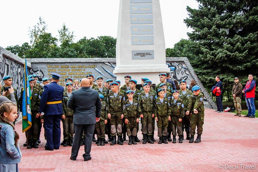 Потом мы пошли мимо училища и даже не думали, что попадем внутрь. Но оказалось, что в день присяги там был день открытых дверей и мы смогли зайти внутрь. Я даже увидела памятник своему однофамильцу! Василий Васильевич Пименов — Герой Советского Союза, командир батальона 345-го гвардейского отдельного парашютно-десантного полка в составе 40-й армии Краснознамённого Туркестанского военного округа Ограниченный контингент советских войск в Афганистане, гвардии майор.