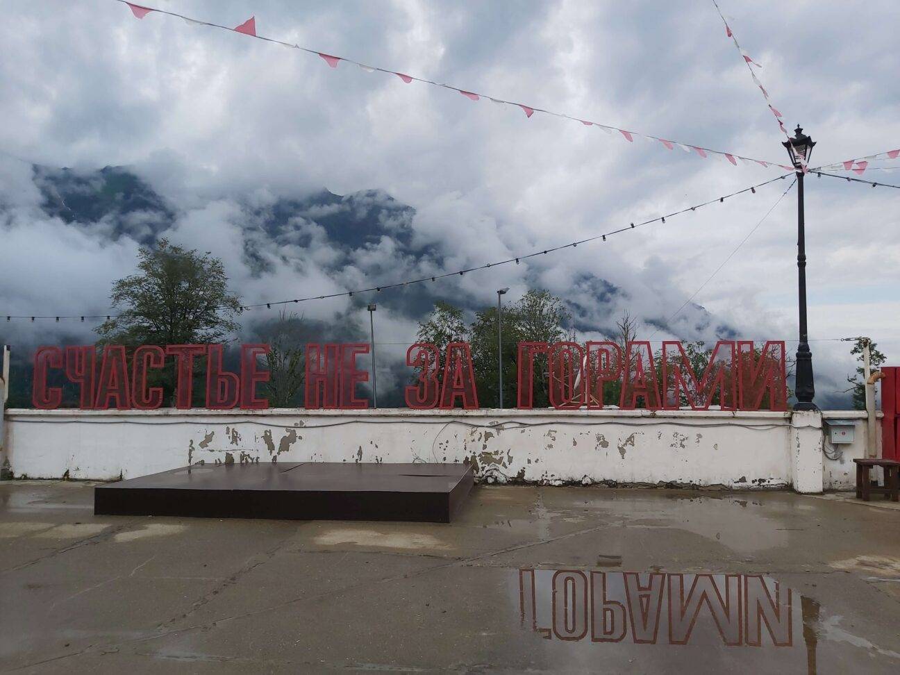 В Олимпийской деревне хорошо видно горы. Например, можно сфотографироваться с такой надписью