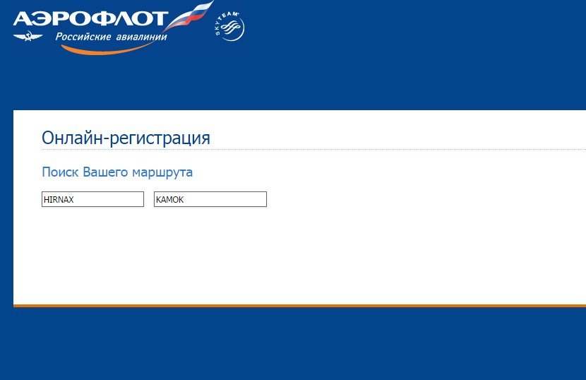 Началом этой операции станет введение кода бронирования и фамилии пассажира. Код указывается:
