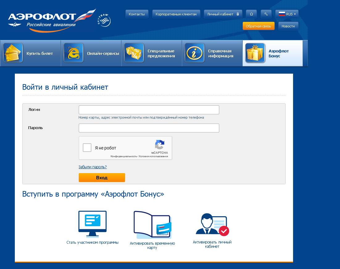 На сайте авиакомпании действует система «Личный кабинет». Здесь можно оперативно получать информацию об акциях, начисленных бонусах, просматривать специальные предложения, операции по счету, бронировать билеты. Вход в сервис находится на главной странице, вкладка – «Личный кабинет». Кликнув туда, вы попадете на страницу авторизации, где сначала необходимо: