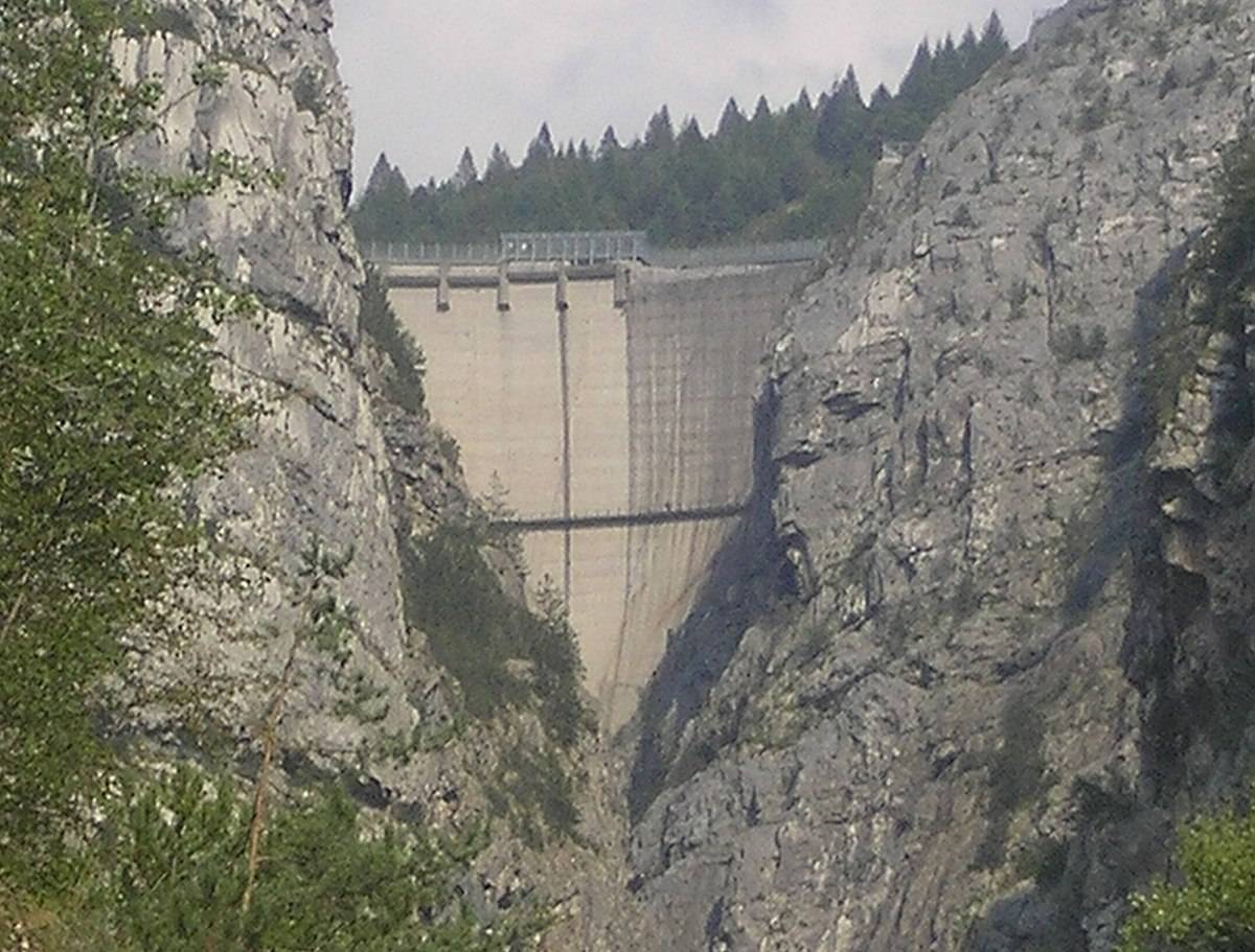 Плотина Вайонт в Италии представляет собой купольную конструкцию, для которой характерно увеличение нависания с повышением отметки. По контуру она ограничена периметральным швом и опирается на расширенные устои – седло.