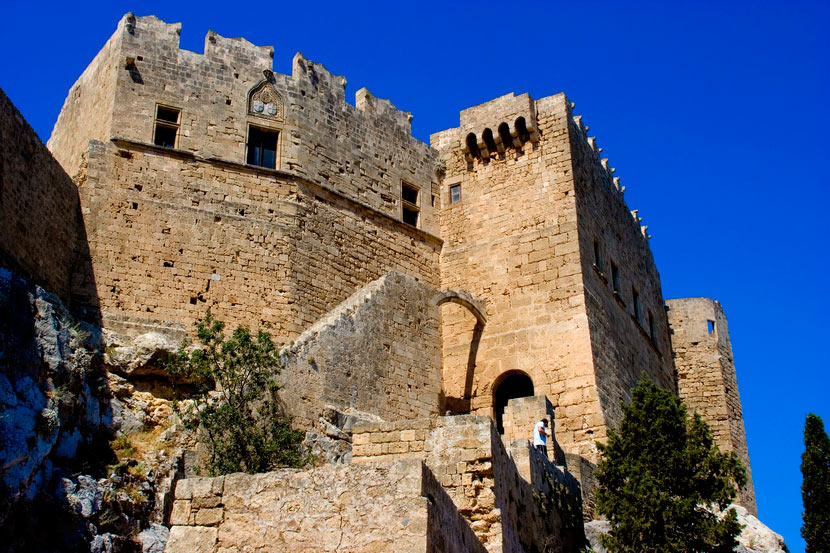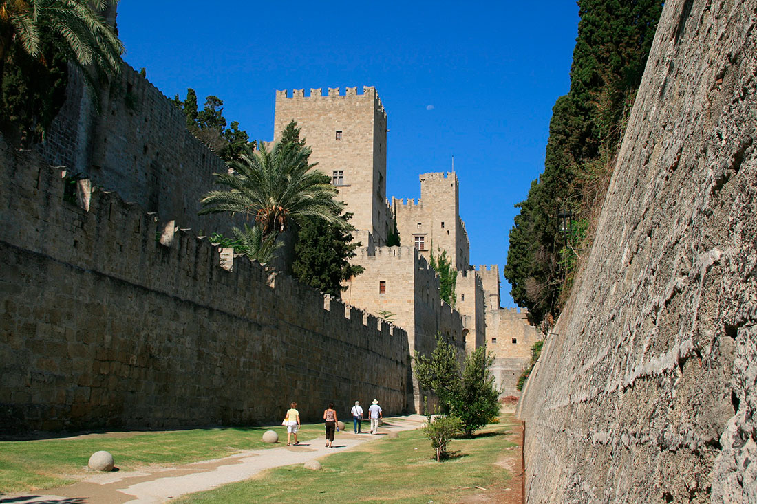 Родосская крепость — главный памятник Средневековья на острове. Строительство цитадели началось в 1309 году. Четыре километра стен высотой 12 метров и широкий ров обеспечивали надёжную защиту острова и позволили выдержать несколько длительных осад. С 1988 года Родосская крепость входит в список Всемирного наследия ЮНЕСКО.