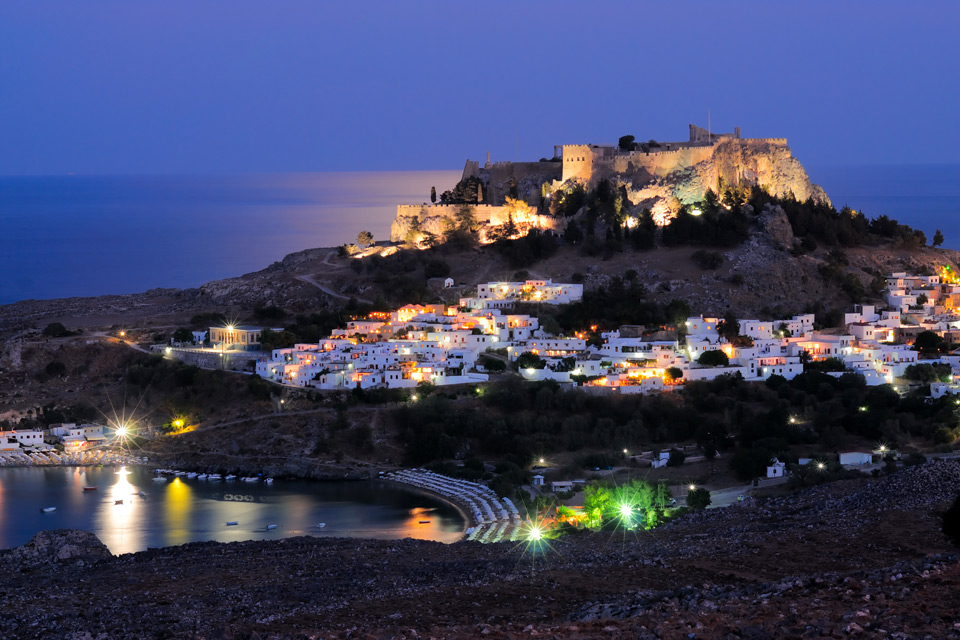 Акрополь в Линдосе — археологический памятник, расположенный на вершине неприступной скалы, высота которой достигает 116 метров. Он представляет собой единый ансамбль древних сооружений, датируемых IV–II веками до н.э. Комплекс окружён средневековым укреплением и занимает площадь 8400 кв. м, попасть на территорию можно через ворота. Гуляя по Акрополю, вы увидите знаменитый храм Афины Линдийской, церковь св. Иоанна, крепость рыцарей, корабль, высеченный в скале, Дворец Великого Магистра и другие сооружения.