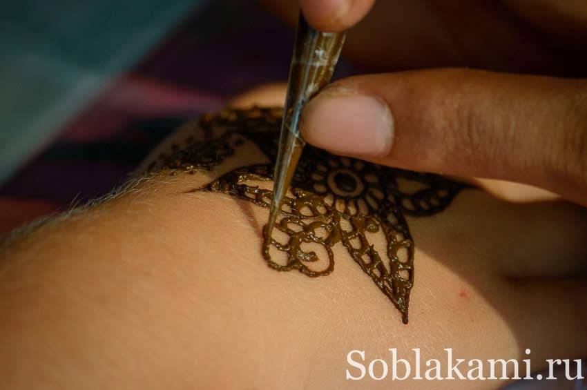 Хна для рисования на теле сохнуть должна не менее 6 часов