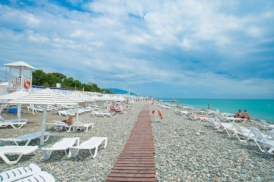 Пляж на Имеретинском курорте – это отдельная часть сказки. Он галечный, длиной 7км. А вода в море гораздо более чистая, если сравнивать с Сочи.