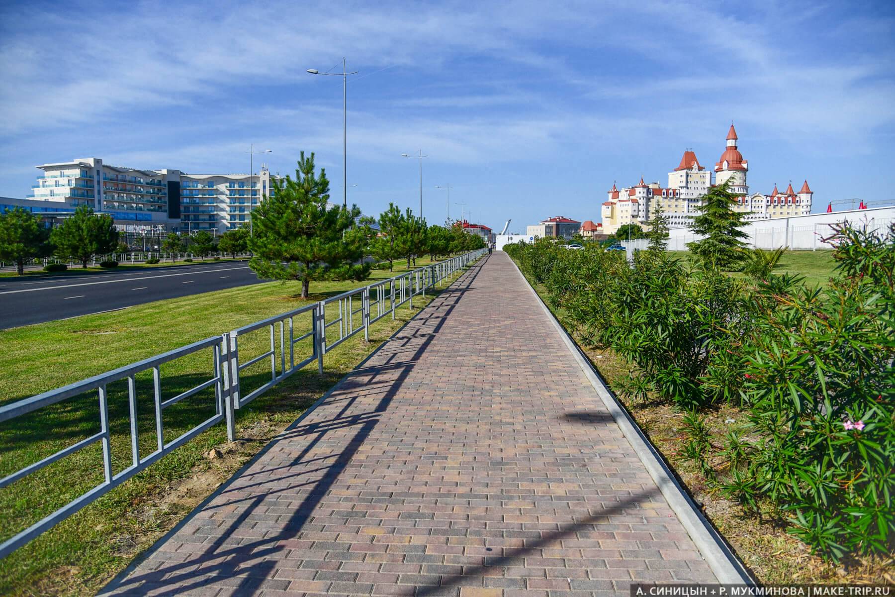 Отзыв туриста: “Цены на все завышены. Гулять негде, дорожка, выложенная тротуарной плиткой, и больше ничего. Олимпийский парк — это ужас. Больше никогда не поедем”.