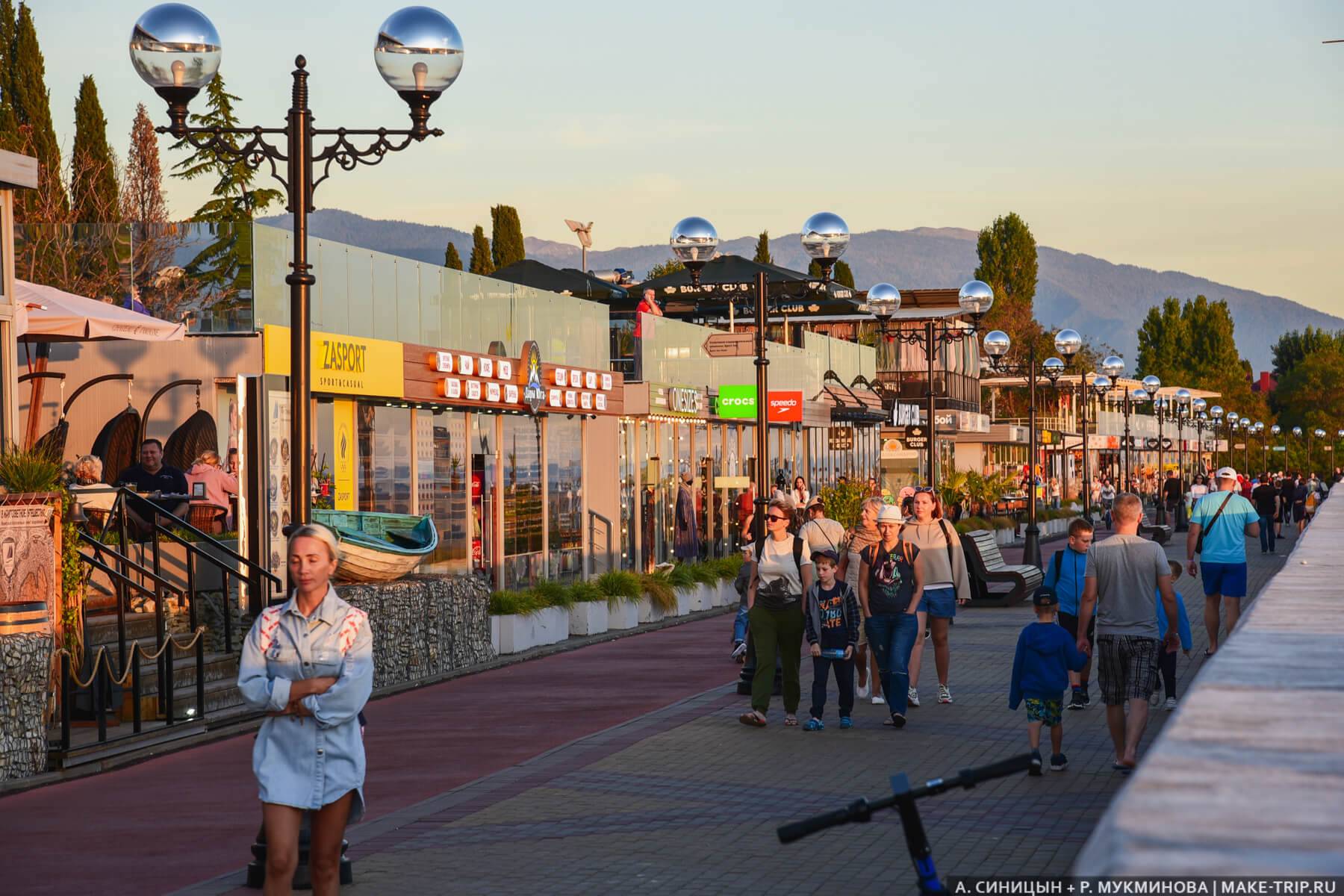 Самое классное в Имеретинке — длинная и непрерывная набережная, то, с чем ассоциируется отдых у моря и чего так не хватает нашим южным курортам.